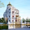 Thiết kế 3 mặt tiền bao quanh công trình với tổng thể các hình khối kiến trúc rất hài hòa, khi thì vuông vắn góc cạnh đầy khỏe khoắn, lúc lại uốn lượn, mềm mại đầy tinh xảo khiến bất cứ ai cũng phải động lòng khi nhìn ngắm công trình này. Sự thời thường trong việc giản lược đi các yếu tố họa tiết không cần thiết và tăng thêm sự sang trọng của kiến trúc hiện đại khiến ngôi biệt thự tân cổ điển 5.5 tầng trở nên hấp dẫn, không bị lỗi thời theo thời gian.