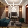 Nội thất phòng khách được thiết kế tối giản, đảm bảo các đồ nội thất tiện nghi trong sử dụng và sinh hoạt của gia đình mình. Thêm vào đó, Phòng khách được tính toán một cách khoa học với thiết kế đơn giản và những gam màu trung tính nhẹ nhàng. Đồ dùng nội thất như bộ sofa và bàn uống nước được tối giản nhằm tạo ra một không gian thoáng đãng. Một số món đồ trang trí như tranh treo tường hay khung ảnh nhỏ trên kệ có thể làm không gian thêm sinh động, tránh sự nhàm chán.