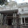 Ảnh chụp thi công hoàn thiện ngoại thất kiến trúc tân cổ điển biệt thự 3 tầng uy nghi và đồ sộ đứng hiên ngang như thách thức với thời gian và thiên nhiên đất trời. Hệ thống cột trụ cân xứng vừa tạo khối cho kiến trúc biệt thự, vừa kiêm luôn nhiệm vụ tạo những điểm nhấn thí vị, độc đáo thu hút sự chú ý của người qua đường.