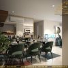 Với tổng diện tích căn phòng khá hẹp, giới hạn chỉ 70m2, không gian đón khách được thiết kế mở tiếp liền không gian bếp nấu và khu ăn uống giúp tiết kiệm tối đa diện tích sử dụng cho gia đình đồng thời tạo cảm nhận không gian rộng, thoáng, sang trọng.