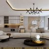 Không gian ăn uống với một bàn ăn gỗ công nghiệp chống ẩm MDF sơn đen tĩnh điện trung tâm khu ăn uống với 8 ghế ngồi đệm êm phục vụ nhu cầu gia đình đông người. Ngoài ra, việc bố trí bể cá trong không gian này cũng mang lại phong thủy vận tài tốt, thỏa mãn đam mê của gia chủ.