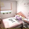 Hệ thống tủ quần áo, kệ trưng đồ được tận dụng tối đa với thiết kế kịch trần kiểu dáng đơn giản chạy sát dọc tường che mảng tường thô cứng mở ra không gian lưu trữ cực rộng cho gia đình. Tủ sử dụng gỗ công nghiệp MDF chống ẩm lõi xanh với gam trắng tạo sự tinh tế, thoáng sáng cho căn phòng khá giới hạn về diện tích này.