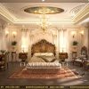 Phòng ăn dinh thự khá rộng với sức chứa 12 người được thiết kế kiểu dáng hoàng gia quý tộc. Ánh sáng trong không gian phòng ăn này thực sự quan trọng, nó không chỉ giúp thuận tiện, dễ dàng, tăng vị giác kích thích bữa ăn ngon miệng, mà còn hiệu quả hơn trong vấn đề phong thủy, cũng như tính thẩm mỹ cho toàn bộ không gian.